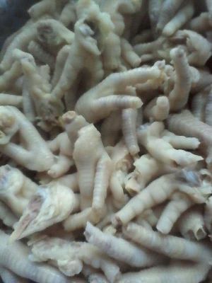 鸡爪选用肉鸡爪,冷冻市场有卖,首先先化冻,然后用剪刀剪去指甲,用刀砍成两半(整只的太大而且不好入味),用水冲洗,最好泡上10多分钟,鸡爪几面也有血水的(跟后面成品的颜色有一定区别的),然后起锅上火加入清水烧开下入鸡爪,水要漠过鸡爪,然后水在一次烧开的时候就可以关火了,在焖上3分钟就行了。(大家都知道一般肉类原料都是用冷水焯水,我这里之所以用热水是为了让鸡爪更有口感和弹性,鸡爪基本上都是胶原蛋白))然后取出鸡爪沥出水分用冷水冲凉,有条件可以加点冰块,控干水分待用(会去骨的朋友在这个时候可以去骨)