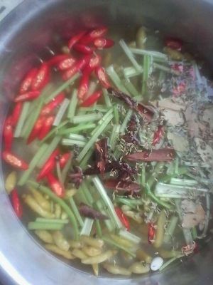 调泡椒水,取一盆加入泡小米椒里面的原汁,在放入适量的泡小米椒(为了更好的入味泡小米椒可以切一下),在加入开水比例和原汁是1:1,待冷却后加入花椒10颗,茴香籽一小撮,八角三个,桂皮一小块,蒜片,姜片,红小米椒10多个,香芹段,柠檬两个,一个挤出汁水,另一个切成四块放入(为了酸味纯正,不放也不要紧),加入白醋,鸡精和味精要多放些,应为是泡至入味,汁浓一点好,白糖适量一下点,品尝一下是不是很爽口很美味呢