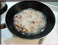加入炸好的鸡块,放入料酒,翻炒片刻,加入高汤与锅内食材齐平,把鸡肉煮嫩,收汁