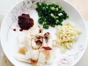 准备材料:葱末、蒜末、肥腊肉、豆瓣酱