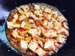 豆腐很容易熟,尤其之前煮过。这样香气扑鼻的麻婆豆腐就闪亮出锅了!