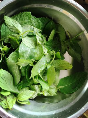 薄荷叶洗净后,用凉开水再冲刷一遍,毕竟是凉拌,要保持卫生不是?