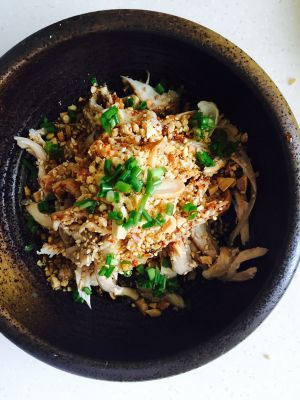上桌前 浇汁 撒花生芝麻碎 撒香葱香菜