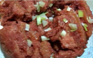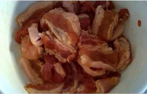 肉洗净 切块 放入老抽 料酒 生抽比例1:1:3 白糖 鸡精 根据口味放多或少。腌制2小时