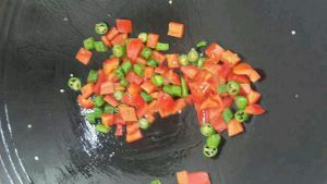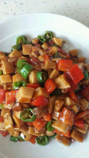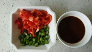 辣椒切丁,醋酱油和糖加淀粉兑成汁