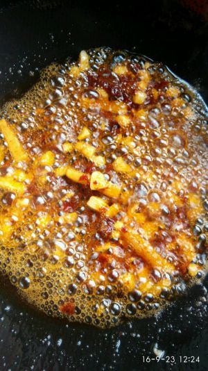 然后放入豆瓣酱生抽蚝油 翻炒30秒