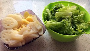 加高汤(或水)煮开两分钟,依加工时间的长短先后加入蔬菜煮熟,捞出备用;
