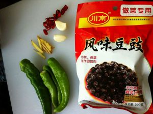 锅里下豆豉油(只要油一点点就够)开始冒烟放五花肉片 中火煸炒,五花肉的油会慢慢渗出物 继续煸炒 3分钟左右 下郫县豆瓣酱和 豆豉 翻炒均匀