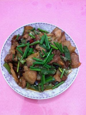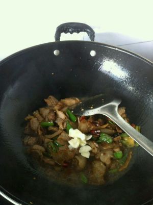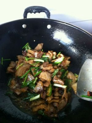 成品!<先炒肉炒至卷卷放郫县豆瓣等料,再炒辣椒,最后放蒜苗>