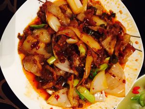 最后放葱白 和 洋葱(洋葱要提前拨成片)炒至葱 和洋葱的味道出来 就可关火成盘