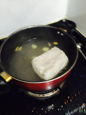 煮肉,将五花肉冷水下锅,在水里加入老姜、料酒(两勺)中火煮20分钟。