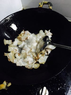 将锅烧热,将切好的肉下锅爆油,见肉爆卷,多余的油滤出。