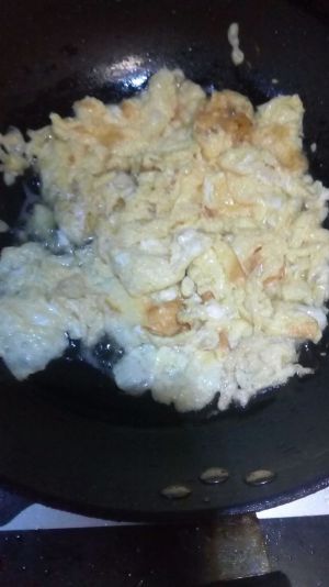将鸡蛋翻熟,搅拌开,熟后盛入盘中
