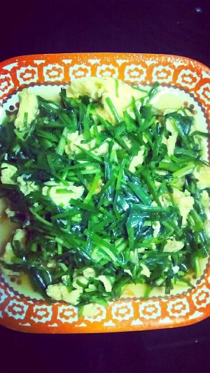锅里倒油,放入韭菜,炒熟放入鸡蛋,轻轻一炒,便可出锅