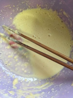调面糊,一个鸡蛋➕少许面粉➕少许水➕盐少许调成糊状。