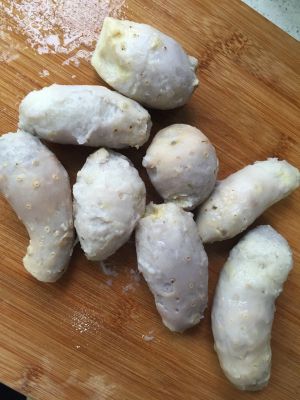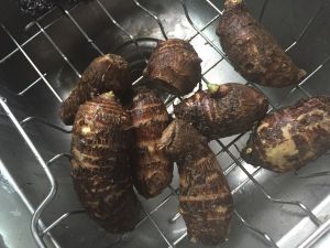高压锅里煮过的芋艿很好剥了。切成块备用