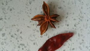热锅加油,油八成熟的时候加入八角,红辣椒其实也不辣就是提个味,可加可不加