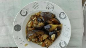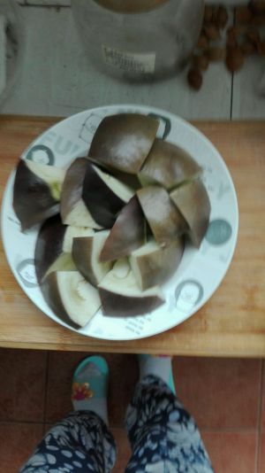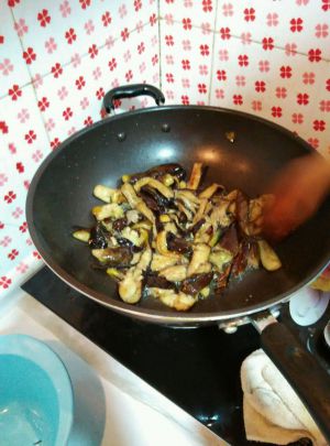 加入大料后和茄子一起翻炒,榨出大料的香味。