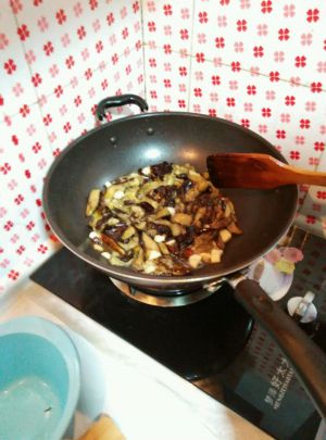 放入花椒大料水,葱姜蒜,翻炒几下。