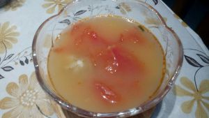 加入切好的西红柿,继续小火炖45分钟。起锅前放入适量盐,葱即可。(现在要求吃的健康,就不加味精了)