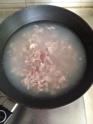 五花肉焯水去血沫,沥干水分。
