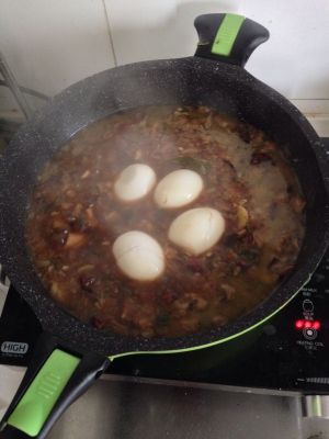 加温水没过食材,放入鸡蛋。