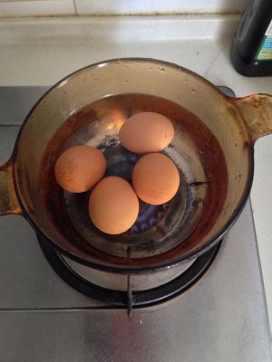 先煮鸡蛋。鸡蛋熟了之后立即用凉水浸泡,去壳备用。
