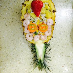 炒好放入菠萝中 虾仁煎好摆好 放上草莓 完成