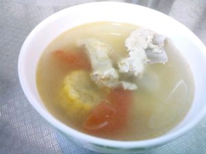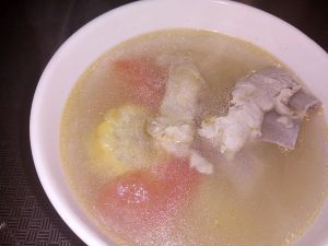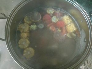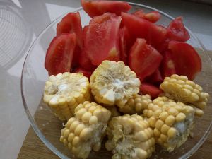 加入西红柿和玉米,中火煮二十分钟,时间快到时加入适量盐