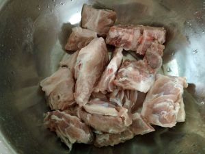 排骨,玉米,胡萝卜,姜,切段的排骨洗干净放入锅中煮沸,水倒掉用凉水再洗一遍