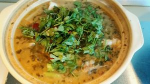 加水烧开放鱼,待鱼五成熟的时候放盐3勺 鸡精1勺 生抽2勺,醋4勺,放入香菜,即可出锅