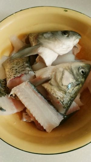 草鱼在市场已经切好拿回来,鱼先用盐搓洗再用水冲干净(这样鱼肉不会散)洗时要轻轻洗,直到肉洗透亮就可以啦