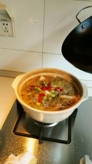 汤烧白后倒入鱼片,快速划开,煮1分钟关火放入干辣椒 青花椒 葱圈 另起锅热油,油热后淋在上面刺啦啦的声音 酸菜鱼的香味扑鼻而来