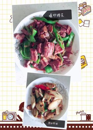 腰花下锅翻炒,加入料酒爆一下去腥,生抽,盐,鸡精调味即可。不要炒太久,口感不好。