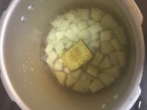 土豆切丁煮熟捞起
