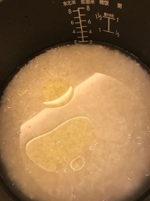 米不要加太多水,在里面加入少许油和盐。