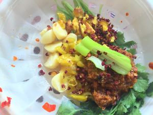 备好料:独蒜 泡椒 花椒 蒜蓉酱 姜 葱 香菜