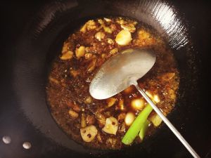 待锅烧热倒入油。待油烧辣倒入备好的调料,炒香