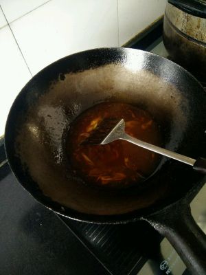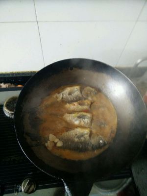 将鱼放进去,加料酒,加水烧开,加盐,糖闷煮,鱼熟了,加淀粉收汁
