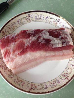 五花肉洗干净,冷水入锅,加料酒,姜片,煮至用筷子轻松戳肉即可