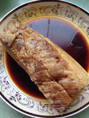 煮好肉后,用酱油和料酒喂一下,腌制十分钟,让肉入味