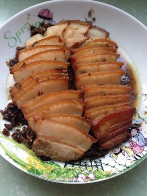 蒸好的梅菜扣肉,倒扣碗中即可。