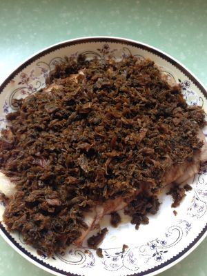 梅干菜切碎,一层肉一层梅干菜,加料酒,盐,生抽,姜片,蒸1小时。