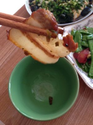 五花肉改刀切成肉片,码好放在碗底。上面盖上严实的梅干菜,上蒸锅蒸半小时。倒扣在盘中,造型美观味道醇厚的梅干菜扣肉就完成了。