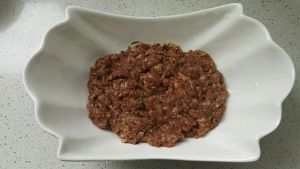 肉糜加生姜,葱花,料酒,老抽,盐,淀粉,顺时针方向搅拌,静置十分钟,铺在盘底摊平