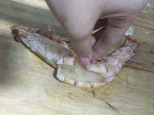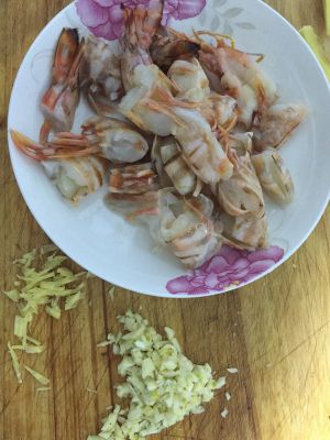 把虾洗干净,去掉虾头虾尾,剔掉虾线,由于男票是个处女座,所以我把虾腿也剪干净了