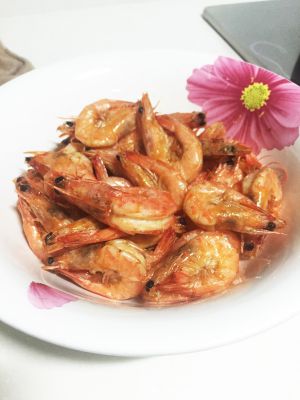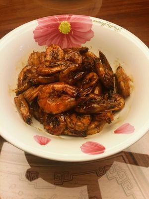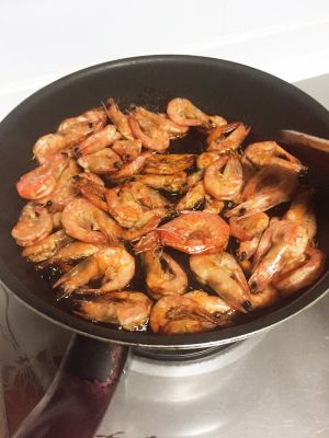翻炒均匀后大火收汁。美味的虾出锅啦!