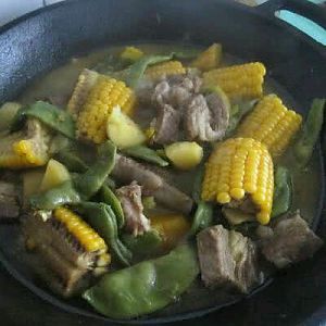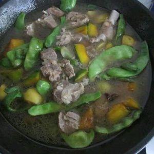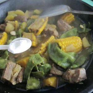 将玉米煮熟后切段备用。锅中放入少量油,依次放入芸豆土豆加入酱油翻炒上色后,加入适量温水,在倒入南瓜盖盖炖煮待汤汁炖煮至一半时放入排骨鸡蛋玉米等,再次盖上锅盖炖煮,至汤汁炖煮剩余不多时放入盐、蔬之鲜后起锅即可。