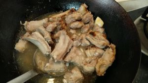 随后加入开水,加到刚好没过排骨的高度。是因为加冷水会让肉立刻收缩变硬!!!!