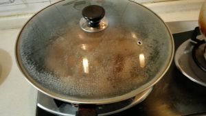 倒进话梅浆水,开大火烧滚5分钟后关小火焖